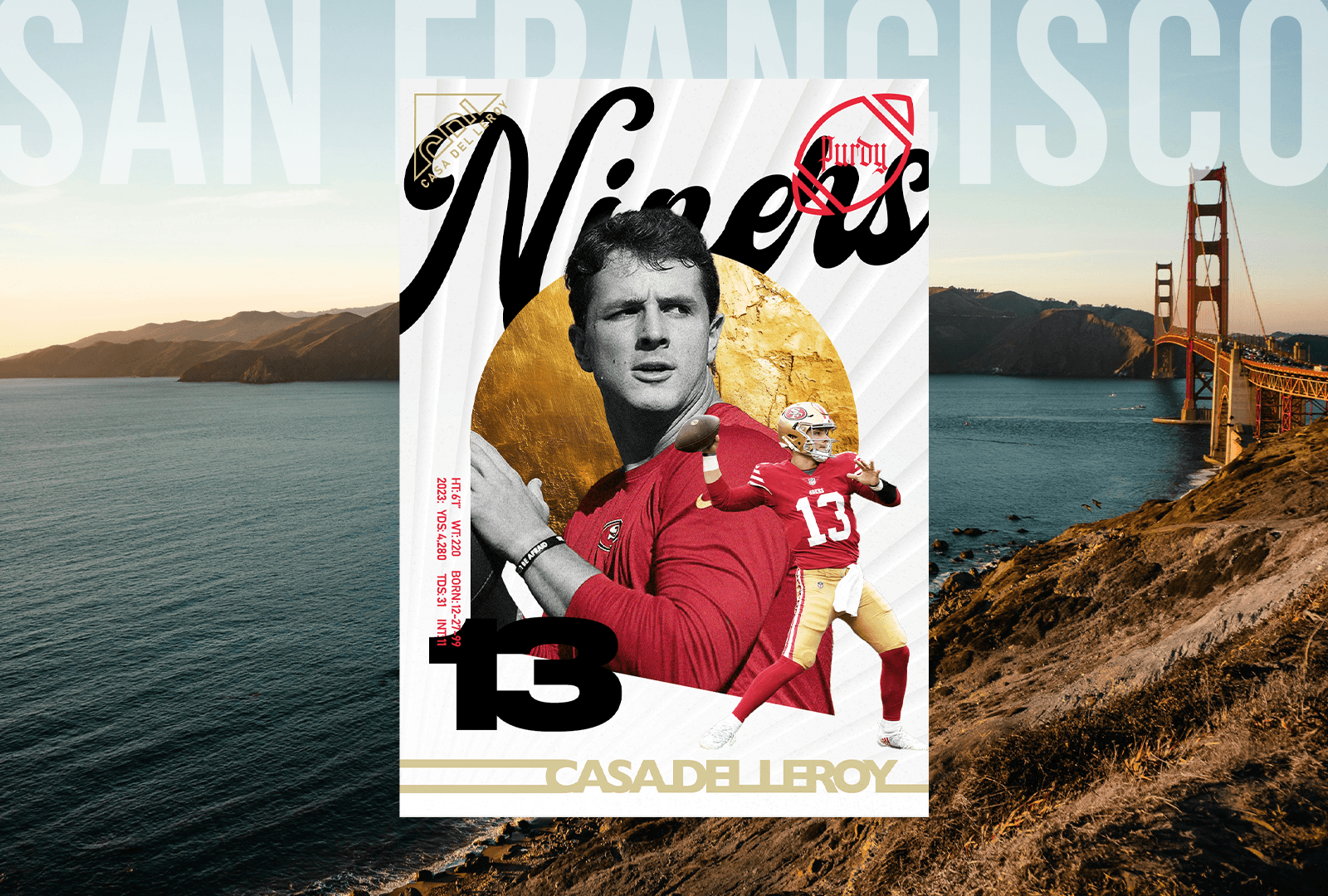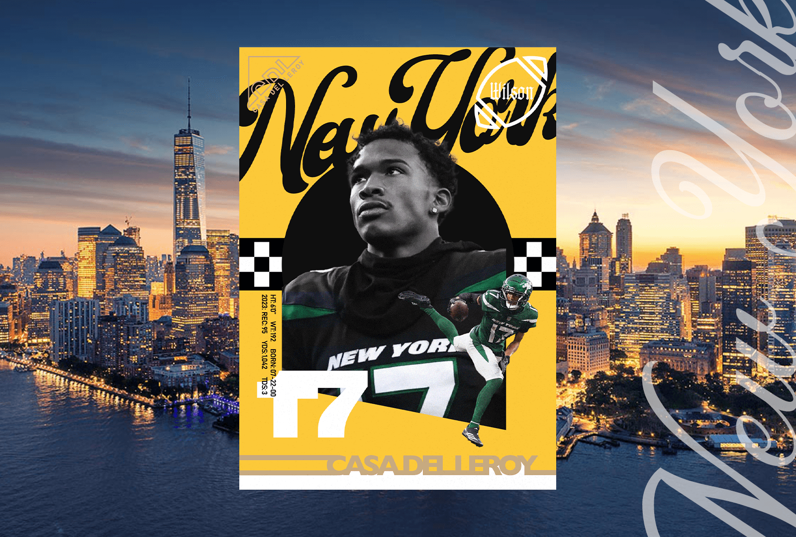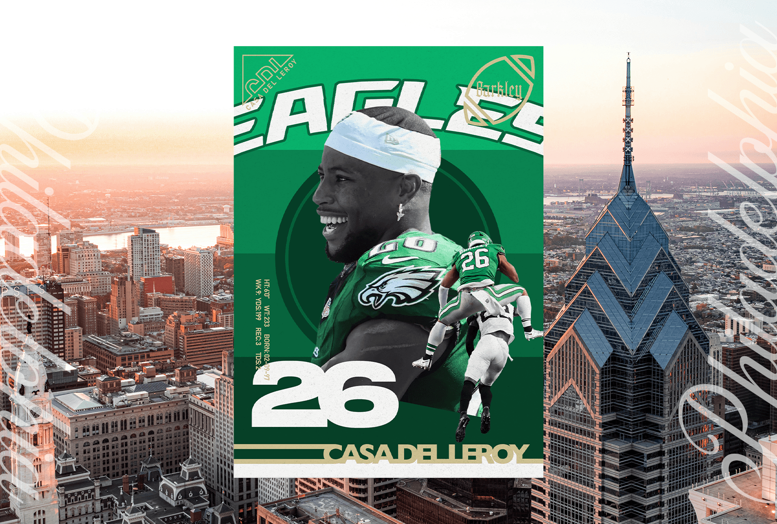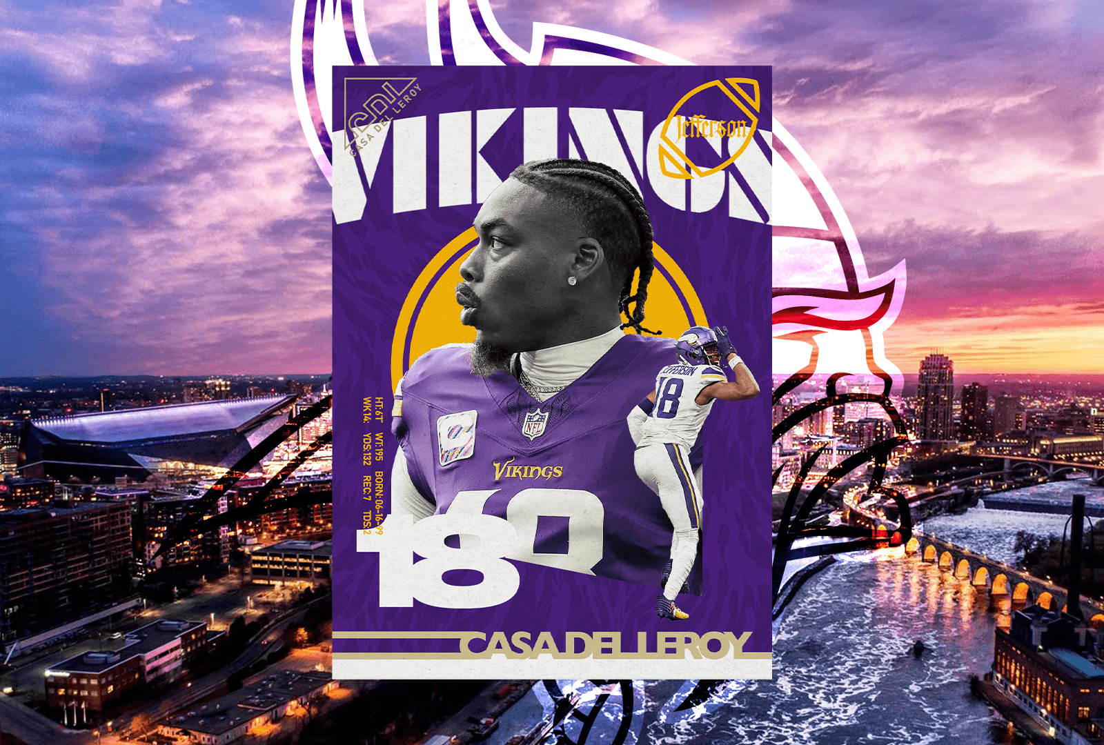 An homage to Jason Drumheller, and the vintage baseball card designs of yesteryear. The player each week who scored the most fantasy points in our league got a personalized card design, with nods towards player backgrounds and/or teams.