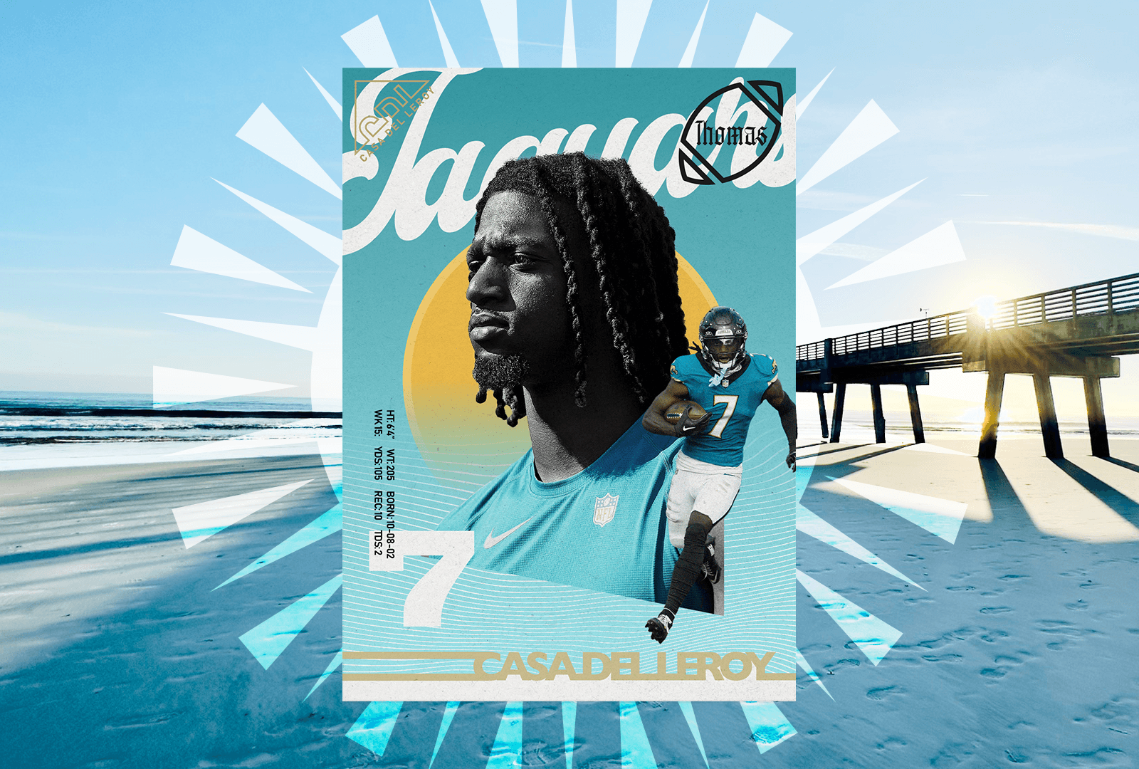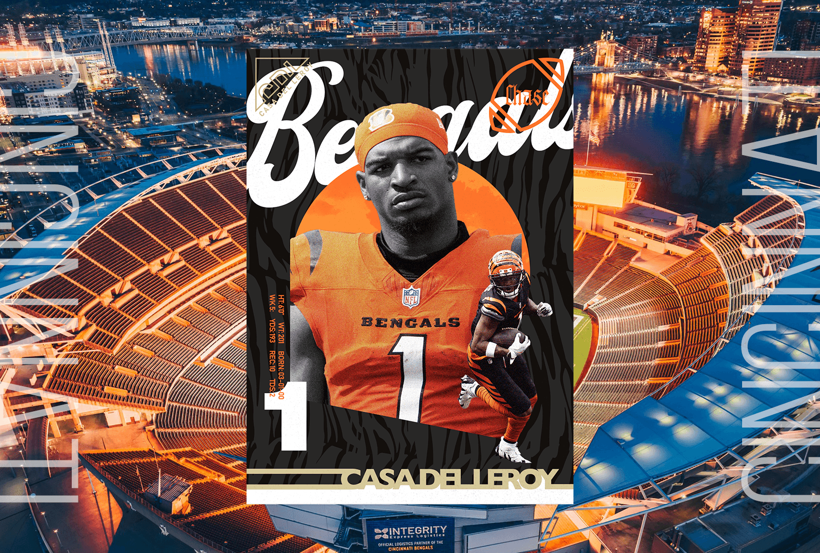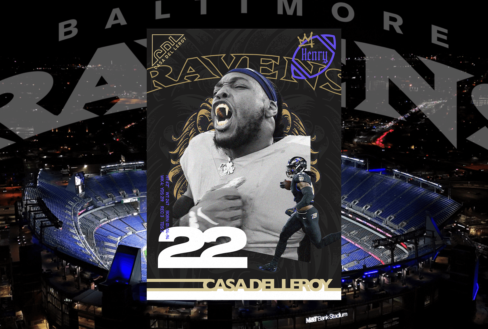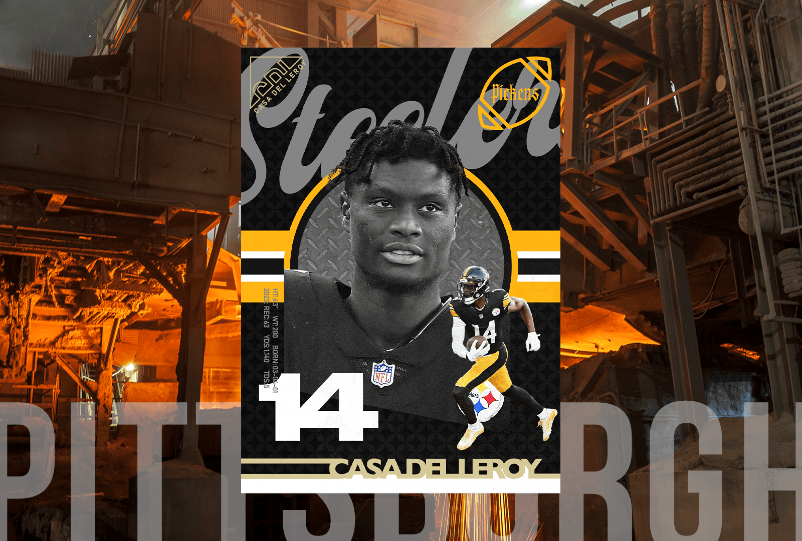 An homage to Jason Drumheller, and the vintage baseball card designs of yesteryear. The player each week who scored the most fantasy points in our league got a personalized card design, with nods towards player backgrounds and/or teams.